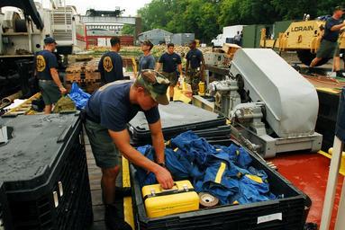 | Keywords: Salvage, Navy Divers Prepare to Return Home DVIDS55690.jpg en Navy divers from Mobile Diving and Salvage Unit 2 pack their gear in preparation for their return to Naval Amphibious Base Little Creek Virginia Beach Va on Aug 21 Divers from MDSU-2 have finished aiding federal state and local officials with the search and recovery efforts at the I-35 bridge collapse site over the Mississippi River in Minneapolis 2007-08-21 MDSU https //www dvidshub net/image/55690 070821-N-+++++-213 2007-09-07 12 37 MINNEAPOLIS MN US PD-USGov-Military-Navy Naval Amphibious Base Little Creek United States Navy Mobile Diving and Salvage Unit Two Images from DoD uploaded by Fæ |