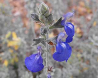 Keywords: Salviachamaedryoides.jpg en Salvia chamaedryoides in the Mediterranean Garden at San Diego State University California USA Own Stickpen 2008-06-14 released to public domain Salvia chamaedryoides