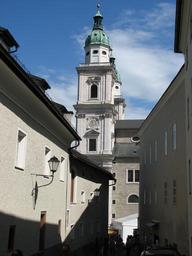 Keywords: salzburg city austria old town dom salzburg cathedral tower alley downtown