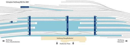 | Keywords: Salzburg Gleisplan alt.svg de Gleisplan Salzburg Hbf vor Beginn der Umbauarbeiten im Jahre 2012 own Ray ray ray 2012-03-10 100px created with Adobe Illustrator Cc-zero Platforms of Salzburg Hauptbahnhof Rail tracks in Salzburg state Rail track diagrams of train stations |