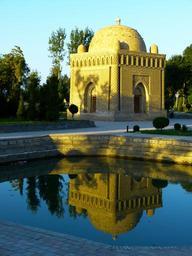 Keywords: samanid mausoleum tomb water mirroring ismail samanis tholos tomb brick architecture old bukhara uzbekistan evening twilight