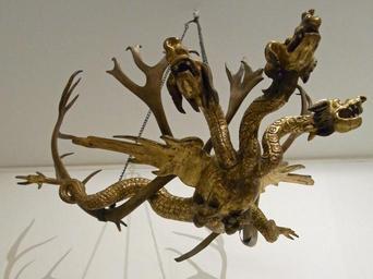 | Keywords: Sammlung Ludwig - Artefakt und Naturwunder-Veit Stoß-Drachenleuchter80130.jpg Artwork creator Veit Stoß after Dreiköpfiger Drache Germany Mittel-Franken Nuremberg <br /> 1522 lime LangSwitch Rentiergeweih Eisen - vergoldet teilweise farbig gefasst gilded partially polycromy reindeer antlers Iron H 48 cm; L 153 cm; B 125 cm Institution Germanisches Nationalmuseum http //objektkatalog gnm de/objekt/HG68 Germanisches Nationalmuseum<br>http //www bildindex de/bilder/MI07841g10a jpg bildindex Object history ehemals Nürnberger Rathaus Johannes Zeltner Nuremberg Exhibition history Artefakt und Naturwunder Das Leuchterweibchen der Sammlung Ludwig 6 Februar - 17 April 2011 Accession number HG68 own Wuselig 2011-02-06 <gallery>Sammlung Ludwig - Artefakt und Naturwunder-Veit Stoß-Drachenleuchter- Entwurf Dürer80327 jpg Entwurf von Albrecht Dürer</gallery> PD-old-100 Drachenleuchter by Veit Stoß after Albrecht Dürer in the GNM k02 |