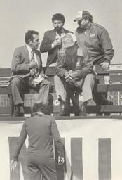 | Keywords: Sammy Bland, Joe Moore, Ray Melton.jpg en Joe Moore Ray Melton and Sammy Bland at Richmond International Raceway when they were track announcers own Ann Salster 2010-06 Public domain Black and white group photographs of men Sitting men Males with baseball caps |