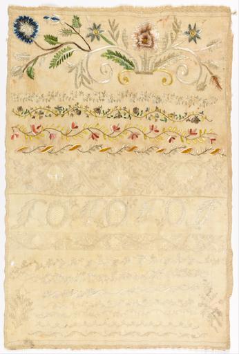 Keywords: Sampler - Google Art Project (6715360).jpg 6938587 Unknown /collection/cooper-hewitt-national-design-museum/artwork/sampler-unknown/6715360/ 75191 author /collection/cooper-hewitt-national-design-museum/ Cooper-Hewitt National Design Museum 3644669 http //www cooperhewitt org/ /collection/cooper-hewitt-national-design-museum/artwork/sampler-unknown/6715360/ 1700 18th century Medium silk and linen embroidery linen foundationTechnique satin stem and split stitches with drawnwork on plain weave ex coll Mrs Henry E Coe Eva Johnston Coe 6715360 False 1799 1941-69-128 http //collection cooperhewitt org/view/objects/asitem/id/75191 Bequest of Mrs Henry E Coe Sampler 1700 1800 18th century False 0 67578125 Object sampler-unknown Sampler s H x W 57 x 38 cm 22 7/16 x 14 15/16 in Medium silk and linen embroidery linen foundationTechnique satin stem and split stitches with drawnwork on plain weave ex coll Mrs Henry E Coe Eva Johnston Coe special url_id 5wFYQ1g9zvcu8Q PD-old-100 Google Art Project works by unknown artist Textiles in the Cooper “Hewitt Smithsonian Design Museum 18th-century samplers Google Art Project works in Cooper-Hewitt Smithsonian Design Museum |