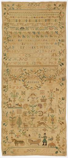Keywords: Sampler - Google Art Project (6715363).jpg 6938587 Unknown /collection/cooper-hewitt-national-design-museum/artwork/sampler-unknown/6715363/ 75198 author /collection/cooper-hewitt-national-design-museum/ Cooper-Hewitt National Design Museum 3644669 http //www cooperhewitt org/ /collection/cooper-hewitt-national-design-museum/artwork/sampler-unknown/6715363/ 1806 1806 Medium silk embroidery on linen foundation Technique wrapped bars and cross stitch on plain weave ex coll Mrs Henry E Coe Eva Johnston Coe 6715363 False 1806 1941-69-134 http //collection cooperhewitt org/view/objects/asitem/id/75198 Bequest of Mrs Henry E Coe Sampler 1800 1810 1806 False 0 431640625 Object sampler-unknown Sampler s H x W 72 x 31 cm 28 3/8 x 12 3/16 in Medium silk embroidery on linen foundation Technique wrapped bars and cross stitch on plain weave ex coll Mrs Henry E Coe Eva Johnston Coe Various initals special url_id GgFt4xQ0v0Pi8A PD-old-100 Google Art Project works by unknown artist Textiles in the Cooper “Hewitt Smithsonian Design Museum 1800s samplers Google Art Project works in Cooper-Hewitt Smithsonian Design Museum 1806 works |