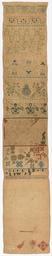 | Keywords: Sampler - Google Art Project (4165536).jpg 6938587 Unknown /collection/cooper-hewitt-national-design-museum/artwork/sampler-unknown/4165536/ 75239 author /collection/cooper-hewitt-national-design-museum/ Cooper-Hewitt National Design Museum 3644669 http //www cooperhewitt org/ /collection/cooper-hewitt-national-design-museum/artwork/sampler-unknown/4165536/ 1600 17th century Medium silk embroidery on linen foundationTechnique satin cross double running eyelet and surface stitches on plain weave ex coll Mrs Henry E Coe Eva Johnston Coe 4165536 False 1699 1941-69-176 http //collection cooperhewitt org/view/objects/asitem/id/75239 Bequest of Mrs Henry E Coe Sampler 1600 1700 17th century False 0 201171875 Object sampler-unknown Sampler s H x W 92 x 17 cm 36 1/4 x 6 11/16 in Medium silk embroidery on linen foundationTechnique satin cross double running eyelet and surface stitches on plain weave ex coll Mrs Henry E Coe Eva Johnston Coe special url_id mgGoiCKnc84Y-Q PD-old-100 Google Art Project works by unknown artist Textiles in the Cooper “Hewitt Smithsonian Design Museum 17th-century samplers Google Art Project works in Cooper-Hewitt Smithsonian Design Museum |