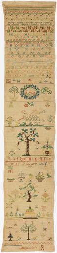 | Keywords: Sampler - Google Art Project (6818767).jpg 6938587 Unknown /collection/cooper-hewitt-national-design-museum/artwork/sampler-unknown/6818767/ 176930 author /collection/cooper-hewitt-national-design-museum/ Cooper-Hewitt National Design Museum 3644669 http //www cooperhewitt org/ /collection/cooper-hewitt-national-design-museum/artwork/sampler-unknown/6818767/ 1820 1820 Medium silk embroidery on linen foundationTechnique embroidered in cross two-sided cross and hem stitches on plain weave foundation 1100 6818767 False 1820 1981-28-327 http //collection cooperhewitt org/view/objects/asitem/id/176930 Bequest of Gertrude M Oppenheimer Sampler 1820 1830 w235 x h1100 cm 1820 False 0 228515625 Object sampler-unknown Sampler s 235 H x W 109 9 x 23 5 cm 43 1/4 x 9 1/4 in CHA 1820 Medium silk embroidery on linen foundationTechnique embroidered in cross two-sided cross and hem stitches on plain weave foundation special url_id mgH7XWx5QSBpQg PD-old-100-1923 Google Art Project works by unknown artist Textiles in the Cooper “Hewitt Smithsonian Design Museum 1820s samplers Google Art Project works in Cooper-Hewitt Smithsonian Design Museum 1820 works |