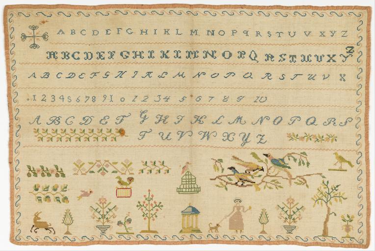 Keywords: Sampler - Google Art Project (4165557).jpg ~ 1815 6938587 Unknown /collection/cooper-hewitt-national-design-museum/artwork/sampler-unknown/4165557/ 75318 author /collection/cooper-hewitt-national-design-museum/ Cooper-Hewitt National Design Museum 3644669 http //www cooperhewitt org/ /collection/cooper-hewitt-national-design-museum/artwork/sampler-unknown/4165557/ 1810 ca 1815 Medium silk embroidery on linen foundationTechnique cross stitch on plain weave ex coll Mrs Henry E Coe Eva Johnston Coe 4165557 False 1820 1941-69-248 http //collection cooperhewitt org/view/objects/asitem/id/75318 Bequest of Mrs Henry E Coe Sampler 1810 1830 ca 1815 False 1 49271137026239 Object sampler-unknown Sampler s H x W 32 x 48 cm 12 5/8 x 18 7/8 in Medium silk embroidery on linen foundationTechnique cross stitch on plain weave ex coll Mrs Henry E Coe Eva Johnston Coe special url_id 9wF0oVmtXXBULg PD-old-100 Google Art Project works by unknown artist Textiles in the Cooper “Hewitt Smithsonian Design Museum 1810s samplers Google Art Project works in Cooper-Hewitt Smithsonian Design Museum 1815 works |