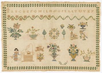 | Keywords: Sampler - Google Art Project (4174969).jpg 6938587 Unknown /collection/cooper-hewitt-national-design-museum/artwork/sampler-unknown/4174969/ 75183 author /collection/cooper-hewitt-national-design-museum/ Cooper-Hewitt National Design Museum 3644669 http //www cooperhewitt org/ /collection/cooper-hewitt-national-design-museum/artwork/sampler-unknown/4174969/ 1800 early 19th century Medium silk embroidery on linen foundationTechnique cross stitches on plain weave ex coll Mrs Henry E Coe Eva Johnston Coe 4174969 False 1850 1941-69-12 http //collection cooperhewitt org/view/objects/asitem/id/75183 Bequest of Mrs Henry E Coe Sampler 1800 1860 early 19th century False 1 38753387533875 Object sampler-unknown Sampler s H x W 28 x 39 cm 11 x 15 3/8 in Medium silk embroidery on linen foundationTechnique cross stitches on plain weave ex coll Mrs Henry E Coe Eva Johnston Coe special url_id GgEHy2Uu4-bdfg PD-old-70-1923 Google Art Project works by unknown artist Textiles in the Cooper “Hewitt Smithsonian Design Museum 19th-century samplers Google Art Project works in Cooper-Hewitt Smithsonian Design Museum |