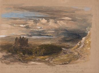 Keywords: Samuel Palmer - Harlech Castle - Google Art Project.jpg Inscribed in graphite lower center make the open sky lighter than cloud the sunny mountains bathe in light sometimes a very distant mountain in light melts up into a lightest grayish cloud With very little difference of color Harlot ; in graphite lower right There might be added an isolated bright light on the mountain ; in graphite right clump of trees the great depth Inscription _Signed_and_Dated Not signed not dated Not on View Watercolor gouache and varnish over graphite with scraping out on medium slightly textured brown wove paper castle landscape special url_id kwFkV4QJG2K8QA PD-old-100-1923 1881 Watercolor paintings by Samuel Palmer Google Art Project works by Samuel Palmer