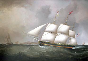 | Keywords: Samuel Walters - American Packet VICTORIA off Holyhead.jpg Artwork Creator Samuel Walters <small>The 601 gross ton VICTORIA was a full-rigged ship built in New York in 1834 She was owned by Captain and Company and for most of her career sailed from the port of Charleston South Carolina on the Liverpool Run She is an early transatlantic packet ship and would be followed by a namesake of the reigning Queen of England in 1843 for the Black X Line from New York to London <br /> Shown here arriving off Holyhead with South Stack just visible under her bowsprit VICTORIA wears a three flag Liverpool Code 1200-8-3 at her foremast for the Holyhead signal station who will relay the news of her identity and arrival to Liverpool This splendid narrative painting is a rare and important example of the unmistakable early style of the artist who became known as the aristocrat of marine painters </small> 1835 oil canvas in 25 37 Baltimore Museum of Art object history Originally Purchased by the Filbert's Margarine Family; Later Acquired by the Baltimore Museum of Fine Art Private New Jersey Collection credit line S Walters signed lowerright accession number http //vallejogallery com/item php title American_Packet_VICTORIA_off_Holyhead category id 907 vallejogallery com PD-old-100 Samuel Walters Victoria ship 1834 Paintings in the Baltimore Museum of Art 1835 paintings 19th-century sailing ships in paintings Wooden ships in art |
