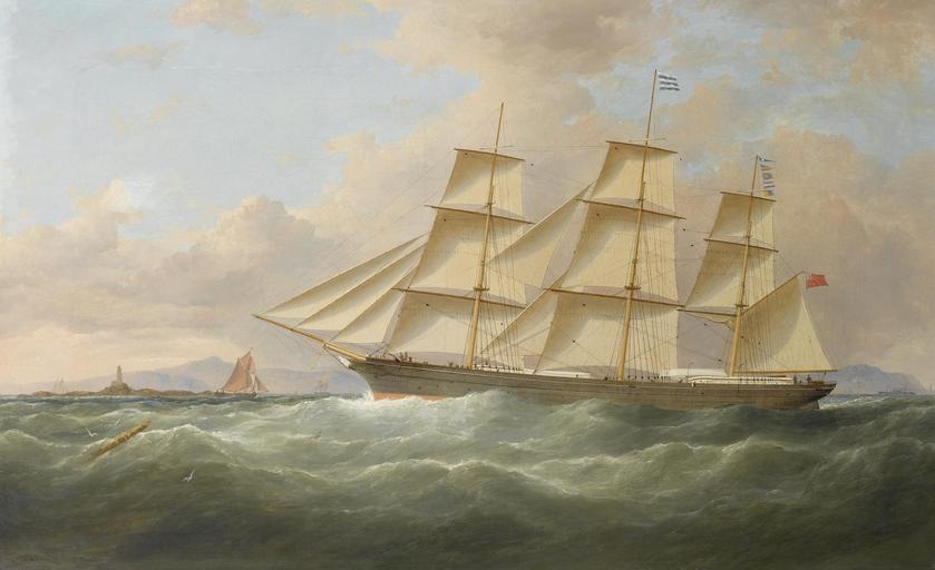 | Keywords: Samuel Walters - The ship 'Chevy Chase' inward bound off the Skerries (1864).jpg Artwork Creator Samuel Walters 1864 oil canvas cm 50 8 81 3 object history credit line ~ lower left signature and date 'Chevy Chase ™ was an iron full-rigger built for Blythe Bros of Liverpool in October 1863 Launched from Vernon ™s yard also in Liverpool she was a handsome 3-master registered at 678 tons gross net and measuring 177 feet in length with a 28 foot beam Although she began her career trading to India in 1866 she transferred into the South American trade where she remained until 1872 Sold that year to G H Fletcher Co of Liverpool her new owner ran her out of the Clyde to San Francisco a route she maintained until 1876 when she was cut down to a barque to save on crewing costs She continued trading thereafter until disappearing from record in the mid-1880s accession number http //www bonhams com/auctions/14977/lot/63/ Bonhams London 11 Sep 2007 lot 63 PD-old-100-1923 Samuel Walters Sailing ships in paintings Images from Bonhams |