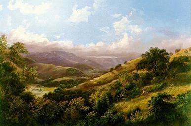 | Keywords: San Anselmo Valley Near San Rafael by William Keith, 1869.jpg Artwork Creator William Keith San Anselmo Valley Near San Rafael 1869 Oil on canvas in 24 36 25 William Keith Collection Hearst Art Gallery St Marys College Moraga CA Two lengthy sojourns in Europe each bracketed by visits to the eastern United States had particularly strong effects on Keith's artistic development In 1869 3 years after he first began exhibiting and selling paintings he left San Francisco for visits to New York and Paris and art study in Dusseldorf Germany By the time he returned to San Francisco in 1872 his painting style had changed considerably The abundance of foreground detail typical of early works like San Anselmo Valley Near San Rafael had been replaced by looser sketchier brushstrokes as in Mount Lyell California Sierra William Keith Collection Hearst Art Gallery Other versions http //www stmarys-ca edu/arts/hearst-art-gallery/william-keith-collection html PD-old-100 Paintings of California William Keith Hills of California 1869 paintings in the United States California Landscape paintings of the United States California Oil paintings of landscapes California Geography of Marin County California California in the 1860s 1860s landscape paintings Saint Mary's College Museum of Art |