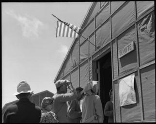 | Keywords: San Bruno, California. Entering Recreational Hall where election is being held for Councilmen. A g . . . - NARA - 537927.jpg Scope and content The full caption for this photograph reads San Bruno California Entering Recreational Hall where election is being held for Councilmen A general election for five members of the Tanforan Assembly center Advisory Council is being held on this day The Issei have never been able to vote before because of American naturalization laws General notes 537927 Local identifier 210-G-C627 Department of the Interior War Relocation Authority 02/16/1944 - 06/30/1946 NARA-Author Lange Dorothea 1895-1965 Photographer 1372774 <br /> Still Picture Records Section Special Media Archives Services Division NWCS-S National Archives at College Park 8601 Adelphi Road College Park MD 20740-6001 1942-06-16 Record group Record Group 210 Records of the War Relocation Authority 1941 - 1989 Record group ARC 537 Central Photographic File of the War Relocation Authority compiled 1942 - 1945 Series ARC 536000 File unit File unit ARC Variant control numbers NAIL Control Number NWDNS-210-G-C627 Other versions <gallery> File San_Bruno _California _Entering_Recreational_Hall_where_election_is_being_held_for_Councilmen _A_g_ _ _ _-_NARA_-_537927 tif tif File San_Bruno _California _Entering_Recreational_Hall_where_election_is_being_held_for_Councilmen _A_g_ _ _ _-_NARA_-_537927 jpg jpg </gallery> NARA-cooperation PD-USGov Dorothea Lange Tanforan Assembly Center Voting in the United States |