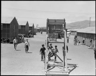| Keywords: San Bruno, California. Evacuee boys in the foreground are playing basket-ball. This is one of eigh . . . - NARA - 537937.jpg Scope and content The full caption for this photograph reads San Bruno California Evacuee boys in the foreground are playing basket-ball This is one of eight recreation centers which are distributed about the assembly center One of the barrack buildings is in each case set apart for games and recreation under the recreation program administered by a Wartime Civil Control Administration official with college trained evacuee supervisors General notes 537937 Local identifier 210-G-C637 Department of the Interior War Relocation Authority 02/16/1944 - 06/30/1946 NARA-Author Lange Dorothea 1895-1965 Photographer 1372774 <br /> Still Picture Records Section Special Media Archives Services Division NWCS-S National Archives at College Park 8601 Adelphi Road College Park MD 20740-6001 1942-06-16 Record group Record Group 210 Records of the War Relocation Authority 1941 - 1989 Record group ARC 537 Central Photographic File of the War Relocation Authority compiled 1942 - 1945 Series ARC 536000 File unit File unit ARC Variant control numbers NAIL Control Number NWDNS-210-G-C637 Other versions <gallery> File San_Bruno _California _Evacuee_boys_in_the_foreground_are_playing_basket-ball _This_is_one_of_eigh_ _ _ _-_NARA_-_537937 tif tif File San_Bruno _California _Evacuee_boys_in_the_foreground_are_playing_basket-ball _This_is_one_of_eigh_ _ _ _-_NARA_-_537937 jpg jpg </gallery> NARA-cooperation PD-USGov Dorothea Lange Tanforan Assembly Center |