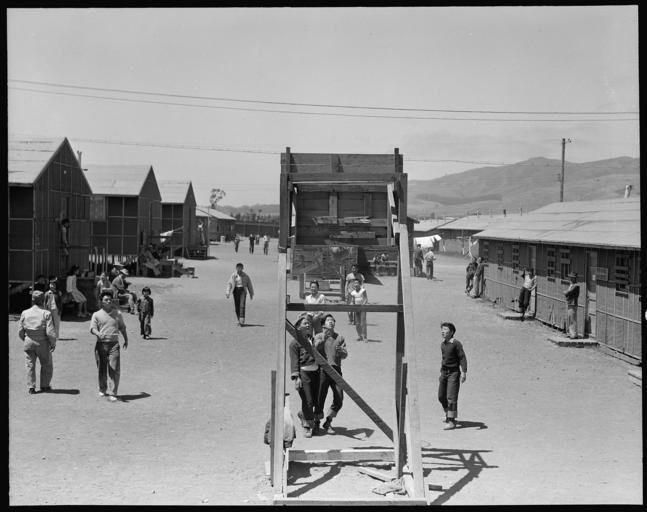 | Keywords: San Bruno, California. Evacuee boys in the foreground are playing basket-ball. This is one of eigh . . . - NARA - 537938.jpg Scope and content The full caption for this photograph reads San Bruno California Evacuee boys in the foreground are playing basket-ball This is one of eight recreation centers which are distributed about the assembly center One of the barrack buildings is in each case set apart for games and recreation under the Recreation program administered by a Wartime Civil Control Administration official with college trained evacuee supervisors General notes 537938 Local identifier 210-G-C638 Department of the Interior War Relocation Authority 02/16/1944 - 06/30/1946 NARA-Author Lange Dorothea 1895-1965 Photographer 1372774 <br /> Still Picture Records Section Special Media Archives Services Division NWCS-S National Archives at College Park 8601 Adelphi Road College Park MD 20740-6001 1942-06-16 Record group Record Group 210 Records of the War Relocation Authority 1941 - 1989 Record group ARC 537 Central Photographic File of the War Relocation Authority compiled 1942 - 1945 Series ARC 536000 File unit File unit ARC Variant control numbers NAIL Control Number NWDNS-210-G-C638 Other versions <gallery> File San_Bruno _California _Evacuee_boys_in_the_foreground_are_playing_basket-ball _This_is_one_of_eigh_ _ _ _-_NARA_-_537938 tif tif File San_Bruno _California _Evacuee_boys_in_the_foreground_are_playing_basket-ball _This_is_one_of_eigh_ _ _ _-_NARA_-_537938 jpg jpg </gallery> NARA-cooperation PD-USGov Dorothea Lange Tanforan Assembly Center |