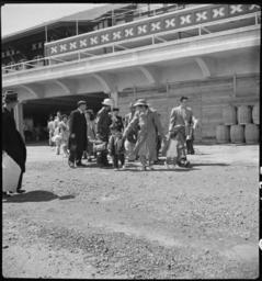 | Keywords: San Bruno, California. Families of Japanese ancestry arrive at assembly center at Tanforan Race Tra . . . - NARA - 537485.jpg Scope and content The full caption for this photograph reads San Bruno California Families of Japanese ancestry arrive at assembly center at Tanforan Race Track Evacuees will be transferred later to War Relocation Authority centers where they will be housed for the duration General notes 537485 Local identifier 210-G-C133 Department of the Interior War Relocation Authority 02/16/1944 - 06/30/1946 NARA-Author Lange Dorothea 1895-1965 Photographer 1372774 <br /> Still Picture Records Section Special Media Archives Services Division NWCS-S National Archives at College Park 8601 Adelphi Road College Park MD 20740-6001 1942-04-29 Record group Record Group 210 Records of the War Relocation Authority 1941 - 1989 Record group ARC 537 Central Photographic File of the War Relocation Authority compiled 1942 - 1945 Series ARC 536000 File unit File unit ARC Variant control numbers NAIL Control Number NWDNS-210-G-C133 Other versions <gallery> File San_Bruno _California _Families_of_Japanese_ancestry_arrive_at_assembly_center_at_Tanforan_Race_Tra_ _ _ _-_NARA_-_537485 tif tif File San_Bruno _California _Families_of_Japanese_ancestry_arrive_at_assembly_center_at_Tanforan_Race_Tra_ _ _ _-_NARA_-_537485 jpg jpg </gallery> NARA-cooperation PD-USGov Tanforan Assembly Center People Photographs taken on 1942-04-29 Dorothea Lange JA internment Tanforan |