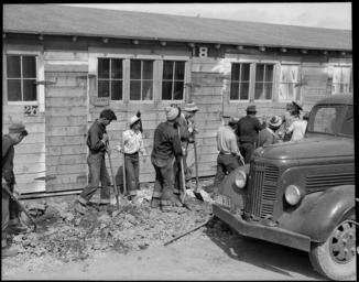 | Keywords: San Bruno, California. Maintenance work, repair and construction is done by volunteer evacuee worke . . . - NARA - 537916.tif Scope and content The full caption for this photograph reads San Bruno California Maintenance work repair and construction is done by volunteer evacuee workers The wages are 8 00 per month for 48 hours per week This gang of boys and young men are digging a drainage tank along the front of one of the barracks General notes 537916 Local identifier 210-G-C616 Department of the Interior War Relocation Authority 02/16/1944 - 06/30/1946 NARA-Author Lange Dorothea 1895-1965 Photographer 1372774 <br /> Still Picture Records Section Special Media Archives Services Division NWCS-S National Archives at College Park 8601 Adelphi Road College Park MD 20740-6001 1942-06-15 Record group Record Group 210 Records of the War Relocation Authority 1941 - 1989 Record group ARC 537 Central Photographic File of the War Relocation Authority compiled 1942 - 1945 Series ARC 536000 File unit File unit ARC Variant control numbers NAIL Control Number NWDNS-210-G-C616 yes Other versions <gallery> File San_Bruno _California _Maintenance_work _repair_and_construction_is_done_by_volunteer_evacuee_worke_ _ _ _-_NARA_-_537916 tif tif File San_Bruno _California _Maintenance_work _repair_and_construction_is_done_by_volunteer_evacuee_worke_ _ _ _-_NARA_-_537916 jpg jpg </gallery> NARA-cooperation PD-USGov Dorothea Lange NARA TIF images with categorized JPGs |