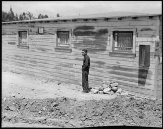 | Keywords: San Bruno, California. Many evacuees suffer from lack of their accustomed activity. The attitude o . . . - NARA - 537941.jpg Scope and content The full caption for this photograph reads San Bruno California Many evacuees suffer from lack of their accustomed activity The attitude of the man shown in this photograph is typical of the residents in assembly centers and because there is not much to do and not enough work available they mill around they visit they stroll and they linger to while away the hours General notes 537941 Local identifier 210-G-C641 Department of the Interior War Relocation Authority 02/16/1944 - 06/30/1946 NARA-Author Lange Dorothea 1895-1965 Photographer 1372774 <br /> Still Picture Records Section Special Media Archives Services Division NWCS-S National Archives at College Park 8601 Adelphi Road College Park MD 20740-6001 1942-06-16 Record group Record Group 210 Records of the War Relocation Authority 1941 - 1989 Record group ARC 537 Central Photographic File of the War Relocation Authority compiled 1942 - 1945 Series ARC 536000 File unit File unit ARC Variant control numbers NAIL Control Number NWDNS-210-G-C641 Other versions <gallery> File San_Bruno _California _Many_evacuees_suffer_from_lack_of_their_accustomed_activity _The_attitude_o_ _ _ _-_NARA_-_537941 tif tif File San_Bruno _California _Many_evacuees_suffer_from_lack_of_their_accustomed_activity _The_attitude_o_ _ _ _-_NARA_-_537941 jpg jpg </gallery> NARA-cooperation PD-USGov Dorothea Lange Tanforan Assembly Center |