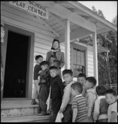 | Keywords: San Bruno, California. Pre-school evacuee children at this assembly center number 25 with six volun . . . - NARA - 537896.jpg Scope and content The full caption for this photograph reads San Bruno California Pre-school evacuee children at this assembly center number 25 with six volunteer student teachers being trained by a Mills College graduate all of Japanese ancestry General notes 537896 Local identifier 210-G-C587 Department of the Interior War Relocation Authority 02/16/1944 - 06/30/1946 NARA-Author Lange Dorothea 1895-1965 Photographer 1372774 <br /> Still Picture Records Section Special Media Archives Services Division NWCS-S National Archives at College Park 8601 Adelphi Road College Park MD 20740-6001 1942-06-16 Record group Record Group 210 Records of the War Relocation Authority 1941 - 1989 Record group ARC 537 Central Photographic File of the War Relocation Authority compiled 1942 - 1945 Series ARC 536000 File unit File unit ARC Variant control numbers NAIL Control Number NWDNS-210-G-C587 Other versions <gallery> File San_Bruno _California _Pre-school_evacuee_children_at_this_assembly_center_number_25_with_six_volun_ _ _ _-_NARA_-_537896 tif tif File San_Bruno _California _Pre-school_evacuee_children_at_this_assembly_center_number_25_with_six_volun_ _ _ _-_NARA_-_537896 jpg jpg </gallery> NARA-cooperation PD-USGov Dorothea Lange Tanforan Assembly Center |