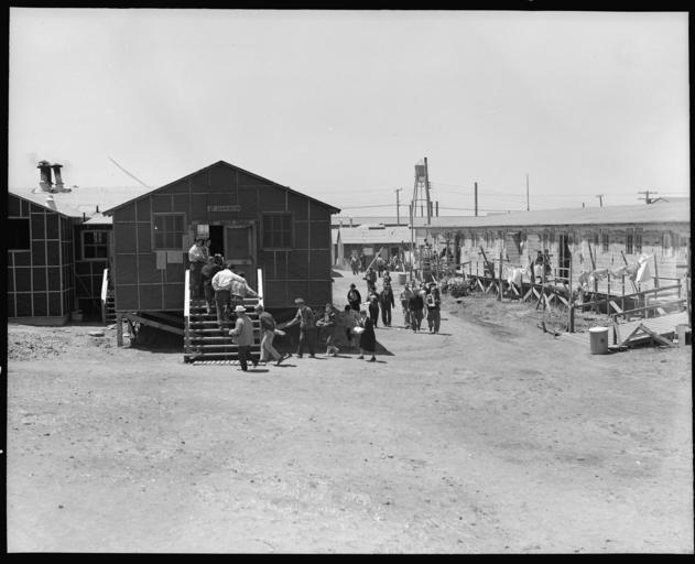 | Keywords: San Bruno, California. Supper time, Meal times are the big events of the day at the assembly cente . . . - NARA - 537953.jpg Scope and content The full caption for this photograph reads San Bruno California Supper time Meal times are the big events of the day at the assembly centers This is a line-up of evacuees waiting for the B shift at 5 45 pm They carry with them their own dishes and cutlery in bags to protect them from the dust They themselves wash their own dishes after each meal since the facilities in the mess halls proved inadequate Most of the residents prefer this shift because sometimes they get second helpings But the groups are rotated each week There are eighteen mess halls at this camp that accomodate together 8 ooo persons three times a day All meals are prepared and served by evacuees General notes 537953 Local identifier 210-G-C655 Department of the Interior War Relocation Authority 02/16/1944 - 06/30/1946 NARA-Author Lange Dorothea 1895-1965 Photographer 1372774 <br /> Still Picture Records Section Special Media Archives Services Division NWCS-S National Archives at College Park 8601 Adelphi Road College Park MD 20740-6001 1942-06-16 Record group Record Group 210 Records of the War Relocation Authority 1941 - 1989 Record group ARC 537 Central Photographic File of the War Relocation Authority compiled 1942 - 1945 Series ARC 536000 File unit File unit ARC Variant control numbers NAIL Control Number NWDNS-210-G-C655 Other versions <gallery> File San_Bruno _California _Supper_time _Meal_times_are_the_big_events_of_the_day_at_the_assembly_cente_ _ _ _-_NARA_-_537953 tif tif File San_Bruno _California _Supper_time _Meal_times_are_the_big_events_of_the_day_at_the_assembly_cente_ _ _ _-_NARA_-_537953 jpg jpg </gallery> NARA-cooperation PD-USGov Dorothea Lange Mess halls |