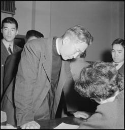 | Keywords: San Francisco, California. Clergyman of Japanese ancestry receives information on evacuation at 203 . . . - NARA - 536466.jpg Scope and content The full caption for this photograph reads San Francisco California Clergyman of Japanese ancestry receives information on evacuation at 2031 Bush Street Evacuees will be housed in War Relocation Authority centers for the duration General notes 536466 Local identifier 210-G-A576 Department of the Interior War Relocation Authority 02/16/1944 - 06/30/1946 NARA-Author Lange Dorothea 1895-1965 Photographer 1372774 <br /> Still Picture Records Section Special Media Archives Services Division NWCS-S National Archives at College Park 8601 Adelphi Road College Park MD 20740-6001 1942-04-25 Record group Record Group 210 Records of the War Relocation Authority 1941 - 1989 Record group ARC 537 Central Photographic File of the War Relocation Authority compiled 1942 - 1945 Series ARC 536000 File unit File unit ARC Variant control numbers NAIL Control Number NWDNS-210-G-A576 Other versions <gallery> File San_Francisco _California _Clergyman_of_Japanese_ancestry_receives_information_on_evacuation_at_203_ _ _ _-_NARA_-_536466 tif tif File San_Francisco _California _Clergyman_of_Japanese_ancestry_receives_information_on_evacuation_at_203_ _ _ _-_NARA_-_536466 jpg jpg </gallery> NARA-cooperation PD-USGov Dorothea Lange Japanese American internment processing in San Francisco |