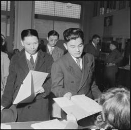 | Keywords: San Francisco, California. Residents of Japanese ancestry file forms containing personal data, two . . . - NARA - 536057.jpg Scope and content The full caption for this photograph reads San Francisco California Residents of Japanese ancestry file forms containing personal data two days before evacuation at Wartime Civil Control Administration station Evacuees will be housed in War Relocation Authority centers where they will spend the duration General notes 536057 Local identifier 210-G-A82 Department of the Interior War Relocation Authority 02/16/1944 - 06/30/1946 NARA-Author Lange Dorothea 1895-1965 Photographer 1372774 <br /> Still Picture Records Section Special Media Archives Services Division NWCS-S National Archives at College Park 8601 Adelphi Road College Park MD 20740-6001 1942-04-04 Record group Record Group 210 Records of the War Relocation Authority 1941 - 1989 Record group ARC 537 Central Photographic File of the War Relocation Authority compiled 1942 - 1945 Series ARC 536000 File unit File unit ARC Variant control numbers NAIL Control Number NWDNS-210-G-A82 Other versions <gallery> File San_Francisco _California _Residents_of_Japanese_ancestry_file_forms_containing_personal_data _two_ _ _ _-_NARA_-_536057 tif tif File San_Francisco _California _Residents_of_Japanese_ancestry_file_forms_containing_personal_data _two_ _ _ _-_NARA_-_536057 jpg jpg </gallery> NARA-cooperation PD-USGov Dorothea Lange Japanese American internment processing in San Francisco |