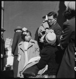 | Keywords: San Francisco, California. This family of Japanese ancestry are waiting for the evacuation buses wh . . . - NARA - 537754.jpg Scope and content The full caption for this photograph reads San Francisco California This family of Japanese ancestry are waiting for the evacuation buses which will take them to an Assembly center They are of the first group of 664 persons to be evacuated from San Francisco General notes 537754 Local identifier 210-G-C434 Department of the Interior War Relocation Authority 02/16/1944 - 06/30/1946 NARA-Author Lange Dorothea 1895-1965 Photographer 1372774 <br /> Still Picture Records Section Special Media Archives Services Division NWCS-S National Archives at College Park 8601 Adelphi Road College Park MD 20740-6001 1942-04-06 Record group Record Group 210 Records of the War Relocation Authority 1941 - 1989 Record group ARC 537 Central Photographic File of the War Relocation Authority compiled 1942 - 1945 Series ARC 536000 File unit File unit ARC Variant control numbers NAIL Control Number NWDNS-210-G-C434 Other versions <gallery> File San_Francisco _California _This_family_of_Japanese_ancestry_are_waiting_for_the_evacuation_buses_wh_ _ _ _-_NARA_-_537754 tif tif File San_Francisco _California _This_family_of_Japanese_ancestry_are_waiting_for_the_evacuation_buses_wh_ _ _ _-_NARA_-_537754 jpg jpg </gallery> NARA-cooperation PD-USGov Dorothea Lange Japanese American internment processing in San Francisco |