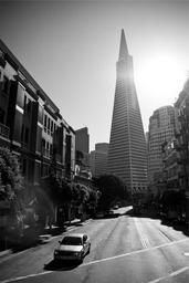 Keywords: san francisco city buildings architecture streets roads cars towers skyscrapers black and white