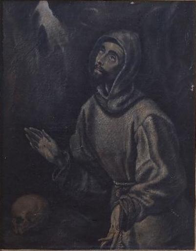 | Keywords: San Francisco de Asís (Museo de Santa Cruz de Toledo).jpg La obra representa a San Francisco de Asís fundador de la Orden de los franciscanos y fue atribuida por Camon Aznar aunque dudosamente según la mayoría de los autores en la actualidad a El Greco Segunda mitad del siglo XVII oil on canvas Size cm 83 105 Institution Museo de Santa Cruz Toledo http //ceres mcu es/pages/Main accession number DO1204 http //ceres mcu es/pages/Main PD-old-100 Paintings of Francis of Assisi in Spain 17th-century paintings of Francis of Assisi Paintings attributed to El Greco 17th-century paintings in the Museo de Santa Cruz Toledo |