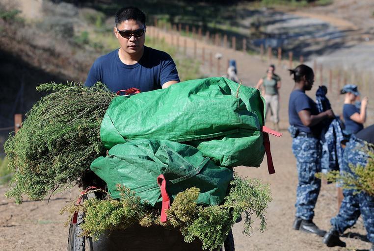 | Keywords: San Francisco Fleet Week 2012 121006-N-FH966-075.jpg en Culinary Specialist 1st Class Lising Martin assigned to the amphibious assault ship USS Makin Island LHD 8 pushes a wheelbarrow at El Polin Springs for a community service project during San Francisco Fleet Week SFFW SSFW 2012 is scheduled from Oct 3-8 and brings more than 2 500 sailors Marines and Coast Guardsmen from four ships to the city of San Francisco in order to highlight the personnel technology and capabilities of the sea services The U S Navy has a 237-year heritage of defending freedom and projecting and protecting U S interests around the globe Join the conversation on social media using warfighting U S Navy photo by Mass Communication Specialist 1st Class David McKee/Released 2012-10-06 Petty Officer 1st Class David McKee https //www dvidshub net/image/719084 121006-N-FH966-075 2012-10-10 22 53 SAN FRANCISCO CA US PD-USGov-Military-Navy USS Makin Island LHD-8 Images from DoD uploaded by Fæ |