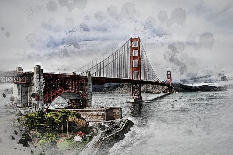 Keywords: san francisco golden gate golden gate bridge water bridge building monument symbol california landmark travel architecture city structure tourism america famous attraction vacation transportation digital painting digital art