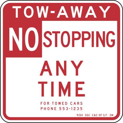 | Keywords: San Francisco No Stopping Tow Away.svg  San Francisco No Stopping Any Time Tow Away sign based on SFDOT sign specs Self made based on SFDOT sign drawing 2009-04-10 own assumed Overpush~commonswiki Diagrams of road signs of California Signs in San Francisco No stopping signs United States Tow-away signs |