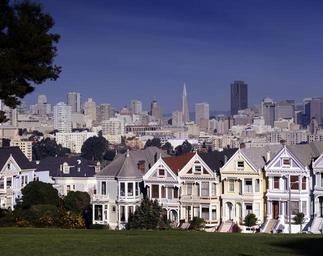 Keywords: san francisco skyline houses downtown cityscape architecture city urban skyscrapers panorama view california usa