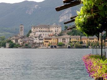 Keywords: san giulio italy island buildings palace castle architecture lake water trees shoreline ships boats nature outside