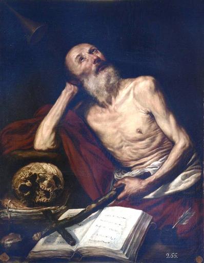 Keywords: San Jerónimo penitente, copia de un original de Antonio de Pereda (Real Academia de Bellas Artes de San Fernando).jpg La obra representa a San Jerónimo de Estridón uno de los Padres de la Iglesia haciendo penitencia en el desierto y es una copia anónima de finales del siglo XVIII de un cuadro idéntico pintado por Antonio de Pereda y Salgado en la centuria anterior y conservado actualmente en el Museo del Prado Último cuarto del siglo XVIII oil on canvas Size cm 85 110 Institution Real Academia de Bellas Artes de San Fernando http //ceres mcu es/pages/Main accession number 0847 http //ceres mcu es/pages/Main PD-old-100 Paintings of penitent Saint Jerome Paintings of Saint Jerome in Spain Paintings of Saint Jerome with skull 18th-century paintings of Saint Jerome Paintings after Antonio de Pereda y Salgado 18th-century paintings in the Royal Academy of Fine Arts of San Fernando |
