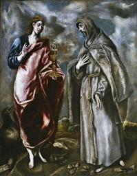 | Keywords: San Juan Evangelista y san Francisco de Asís.jpg Artwork Q6119109 Creator El Greco y La obra representa a San Juan Evangelista junto a San Francisco de Asís fundador de la Orden de los franciscanos circa 1600 1614 oil on canvas Size cm 50 64 Institution Museo del Prado Depositado en el Institution Museo de El Greco Toledo https //www museodelprado es/coleccion/obra-de-arte/san-juan-evangelista-y-san-francisco-de-asis/ed41b280-bb48-49d4-8c8a-62863a0e357a accession number P00820 http //www museodelprado es/imagen/alta_resolucion/P00820 jpg PD-old-100 File San Juan Evangelista y San Francisco El Greco jpg San Juan Evangelista y San Francisco de Asís de El Greco Museo del Prado |