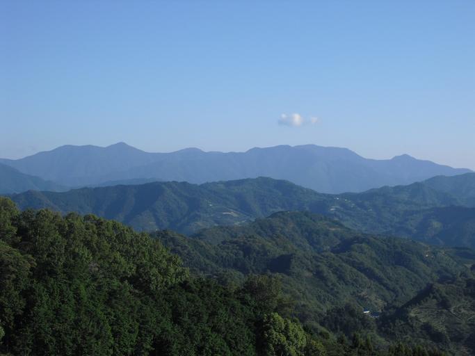 Keywords: Sanbonkui-Takatsukiyama.jpg Mounts Sanbongui and Takatsuki in the Shikoku Mountains Japan 四国山 三 ・高 山 Own As6673 2009-11-13 Mount Sanbongui Mount Takatsuki