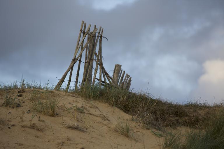 Keywords: sand beach barrier dune sandy beach herbs sea wood evening brittany seascape sky cloud