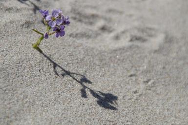 Keywords: sand beach vegetation flora flower small lonely shadow tiny frugal sand beach purple close karg