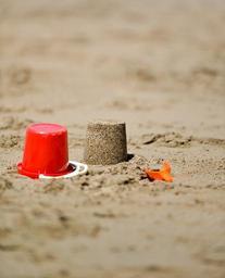 Keywords: sand bucket beach play toy sandcastle shovel red small digging vacation holiday