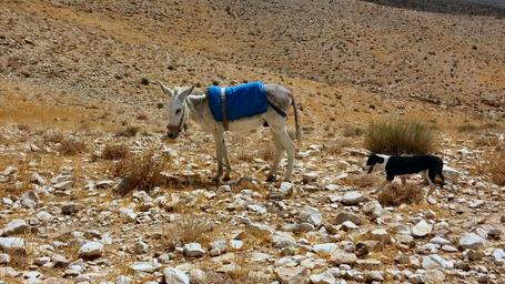 Keywords: sand desert israel scenery hills sky donkey mule dog dry landscape nature