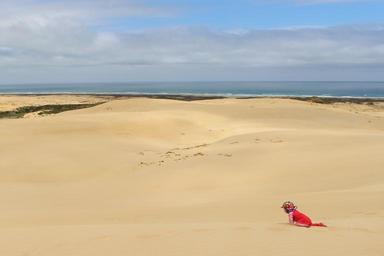 Keywords: sand dune baby crawl child small child infant curiosity red small nature water summer sea horizon sand summer sea holiday motion recording dunes new zealand north island cape reinga