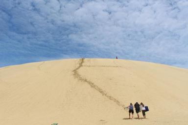 Keywords: sand dune te paki new zealand sky sand landscape nature pacific north island tasman sea blue desert by the sea summer clouds dunes sand boarding board traces island