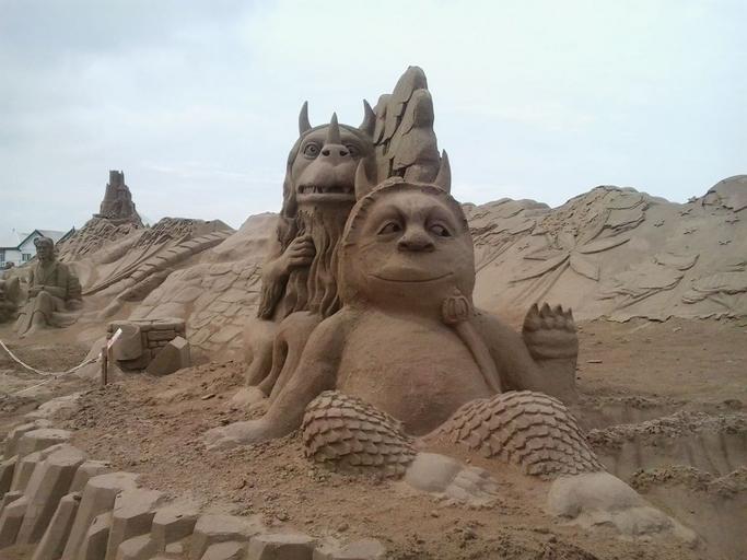 Keywords: sand sculpture exhibition beach creature mythical fantasy sandcastle pile dune fun carving sandy