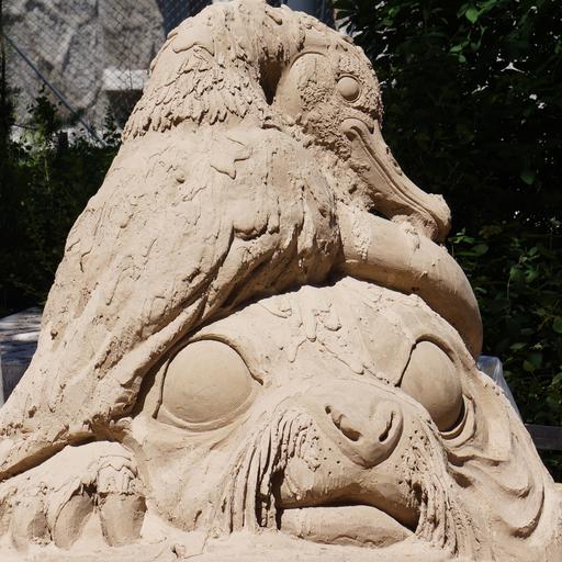 Keywords: sand sculpture work of art made of sand bird and big eyes