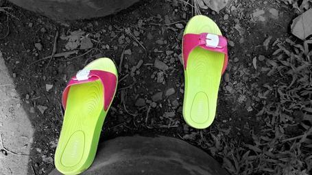 Keywords: sandals lemon colour bright colours pink bright yellow outdoor soil ground rocks nobody summer