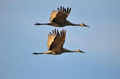 Keywords: sandhill cranes birds flying flight wildlife nature sky wings portrait fowl wild outdoors