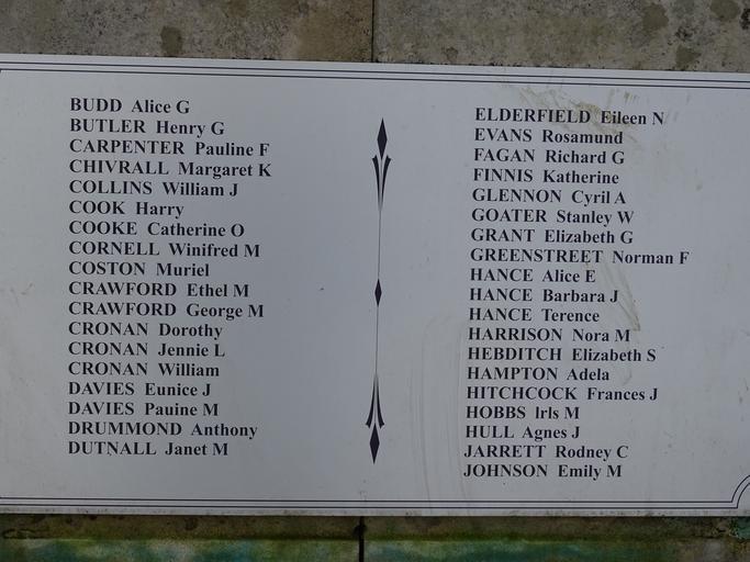 Keywords: text document outdoor plaque writing sign The Sandhurst Road School Disaster was an air raid on a school in Minard Road, Catford, south east London on Wednesday, 20 January, 1943. A German fighter-bomber dropped a 500 kg (1,100 lb) bomb on the school at 12.30 pm, killing 32 children and six staff and injuring another 60 people. Many were buried for hours under the rubble, and six more children died in hospital. The Sandhurst Road School Disaster was an air raid on a school in Minard Road, Catford, south east London on Wednesday, 20 January, 1943. A German fighter-bomber dropped a 500 kg (1,100 lb) bomb on the school at 12.30 pm, killing 32 children and six staff and injuring another 60 people. Many were buried for hours under the rubble, and six more children died in hospital. |