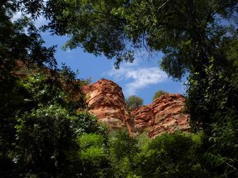 Keywords: sandstone rock frmations red rocks trees forest